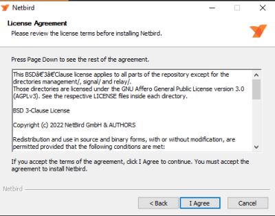 Laden Sie die Software unter https://pkgs.netbird.io/windows/x64 herunter und führen diese mit Adminrechten aus. Die unten stehen Bilder leiten Sie durch die Anleitung.